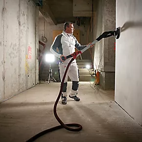 Suitable for finishing large surfaces on walls and ceilings. Offers effective dust extraction and a high surface removal rate. Compatible with the Flex GE 7+ MH-O, GE MH 18.0-EC, GCE 6-EC, GCE 6-EC Kit and GCE 6-EC Kit MH-R.