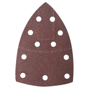Made from a durable aluminium oxide. Ideal for stripping most materials. Can be used on most detail sanders with a hook and loop attachment. Punched holes for dust extraction.