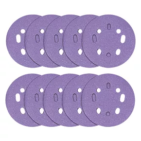 High performance, multi-material, long-life aluminium oxide abrasive. Provides up to 3 times longer life than conventional abrasives. Suitable for wood, paint, plaster and metal. Designed to produce high quality, consistent results whether at trade professional or keen hobbyist level. Increased spacing between the grit particles reduces clogging and allows fast stock removal, especially on gummy, resinous timbers, fillers and during paint removal. Dual resin bonding layers keep the abrasive grit firmly bonded to the backer for increased lifespan. Hook and loop fixings give a secure fix to the power tool base and offer fast, easy removal, increasing productivity when working through grits. Ideal for general sanding applications.